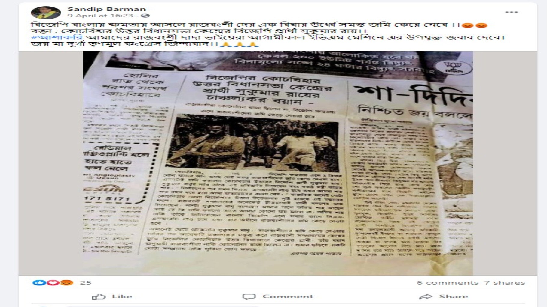 ফ্যাক্ট চেক: না, রাজবংশীদের জমি কেরে নেওয়ার কোনো খবর উত্তরবঙ্গ সংবাদ পত্রিকা ছাপেনি