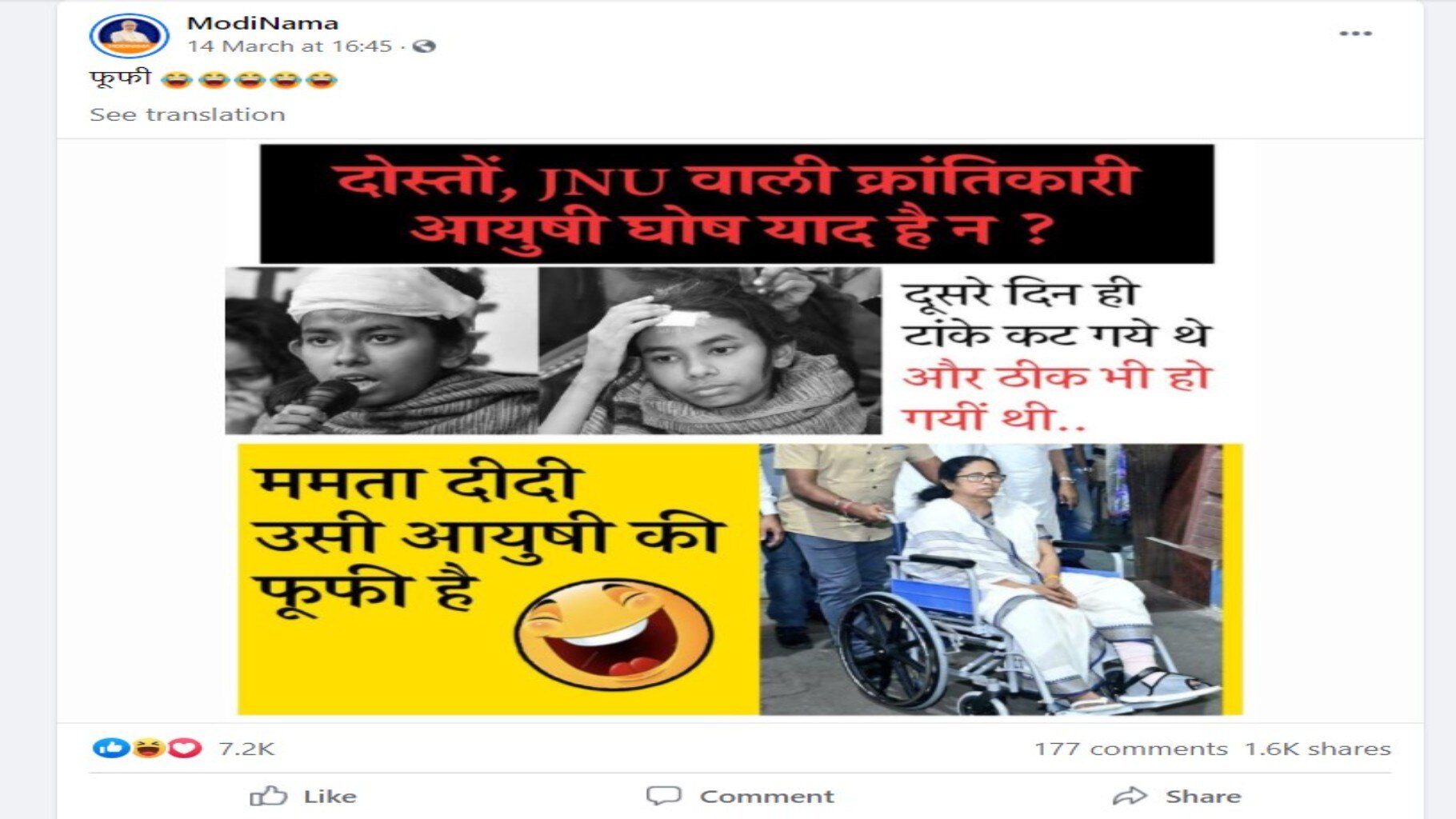 মমতার চোট আর অভিষেকের চড় খাওয়ার ঘটনা নিয়ে বিভ্রান্তিকর পোস্ট