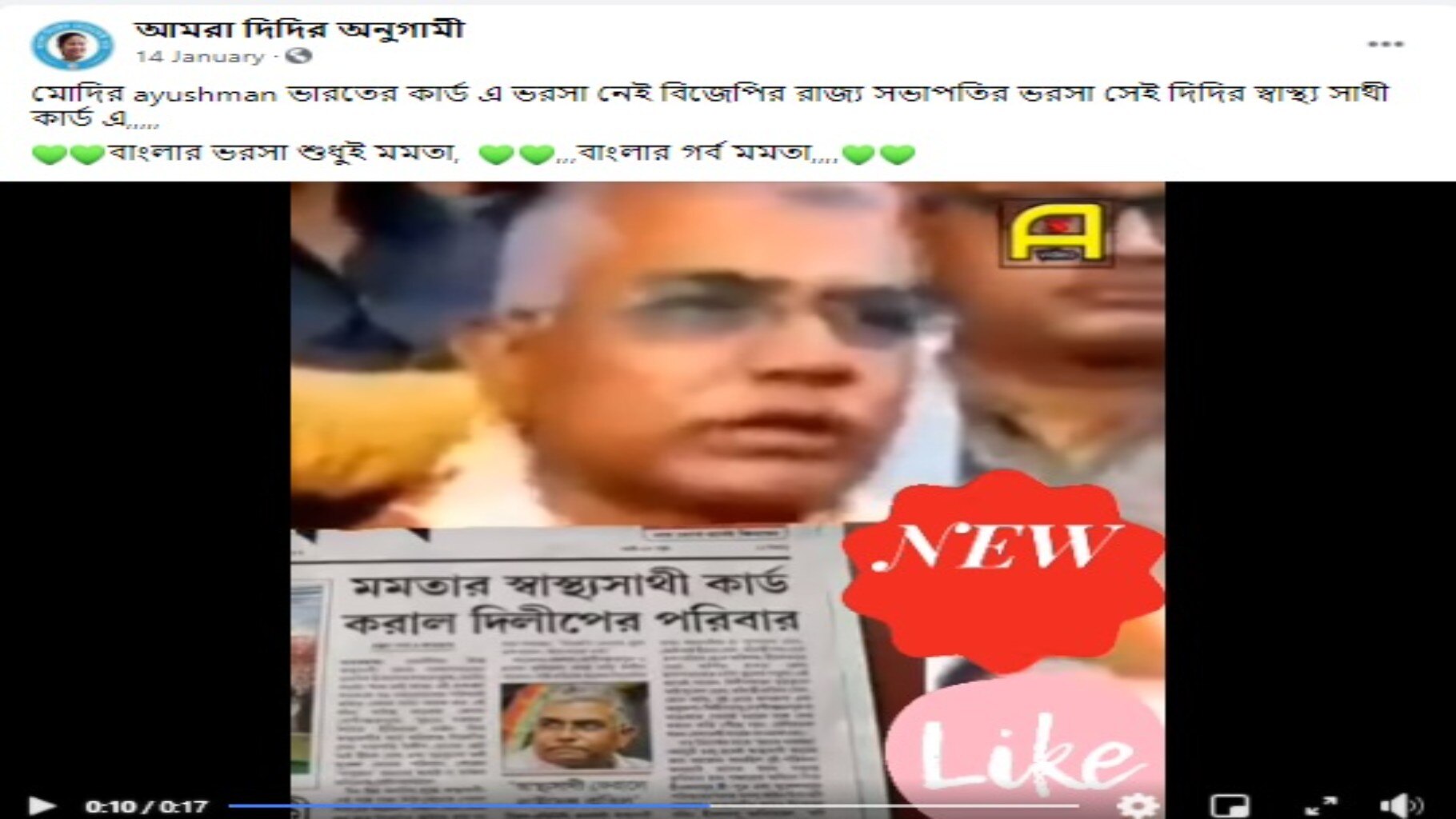 ফেসবুকে দাবি, আয়ুষ্মান ভারত প্রকল্পে ভরসা নেই বলে তিনি স্বাস্থ্যসাথী কার্ড করতে চান