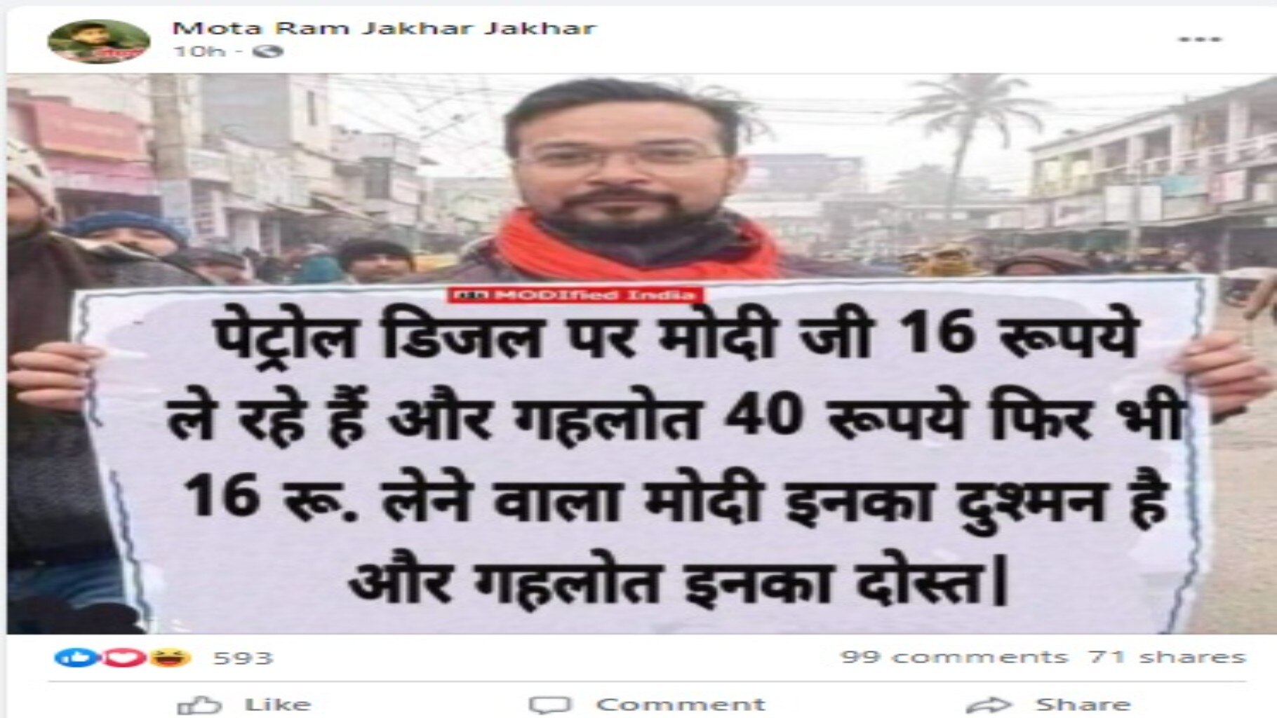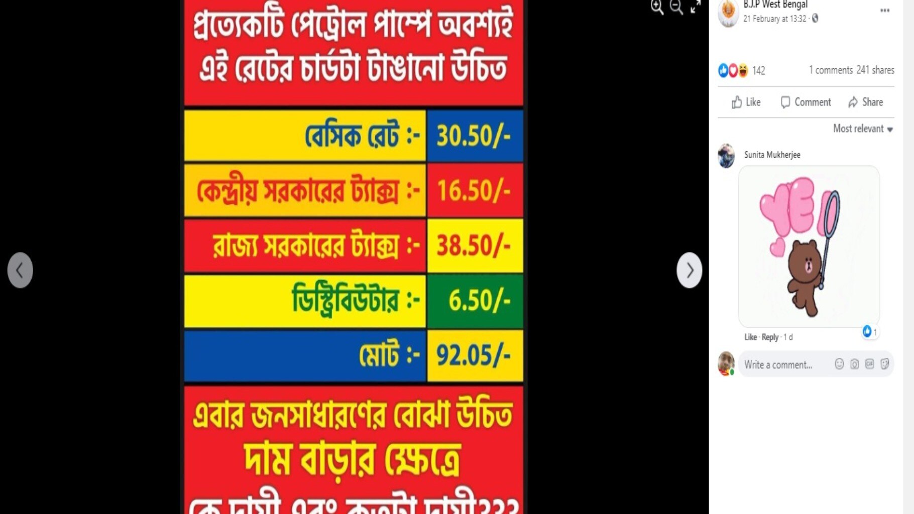 পেট্রোলের উপর কেন্দ্রীয় সরকার ও রাজ্য সরকারের করের পরিমান নিয়ে ভুল পোস্ট