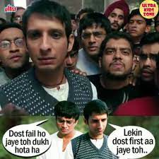 Remember "3 Idiots" and the iconic memeable dialogue where Raju Rastogi says, "dost fail ho jaye to dukh hota hai, lekin best friend first aa jae toh aur dukh hota hai" (It hurts when your friend fails, but it hurts like hell when your best friend tops the class).