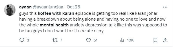 Karan Johar had Ranveer and Deepika as his first couple, and as he should, he brings up the question about Mental health. Deepika indeed talks about her depression and anxiety, but we loved it when Karan also chimed in the conversation and shared his part of the story.