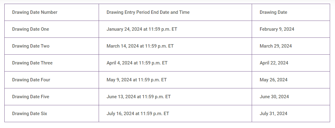 The Sweepstakes winner will be selected randomly by a computer process on the specified Drawing Dates.