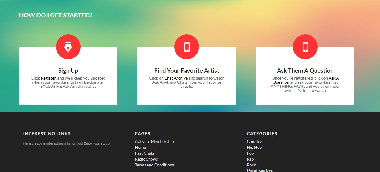 Once you register, you can ask your favorite artists questions, and a reminder will be sent to you when it's time to watch.