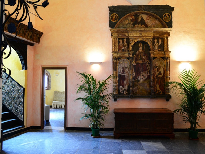 The first floor: There is a hall with a ceiling covered in Lombard-type cross-vaults which leads off into themed rooms, including the Dolcevita room filled with artwork of people who visited Portofino, such as Winston Churchill and Walt Disney.