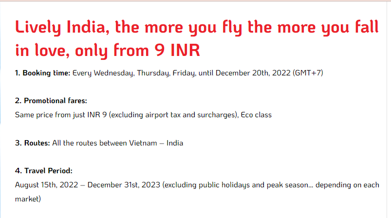 Vietjet’s Indian Call Center: +91 11- 43640490.
