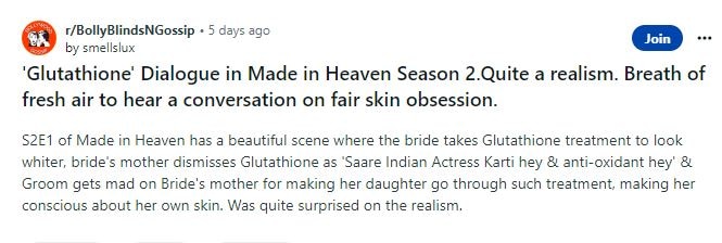 The 'treatment' that she takes is called shots of glutathione, and yes we do still have treatments like this in India, EVEN IN 2023.