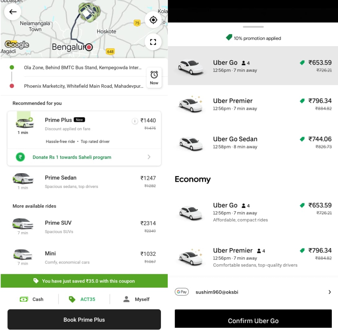 Uber: The fare difference between the Uber Premier and its next economical option, UberGo Sedan, is around Rs 60.