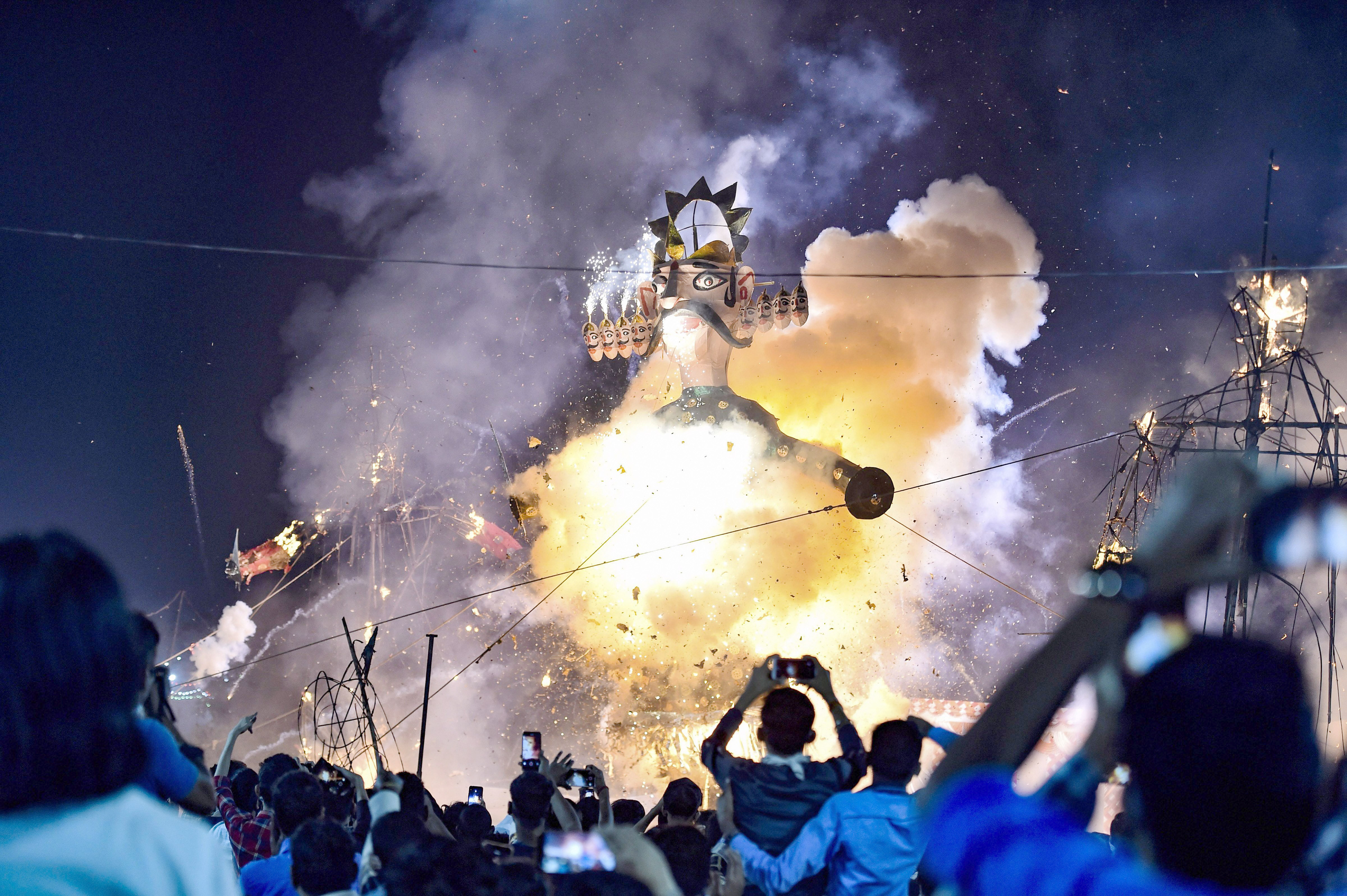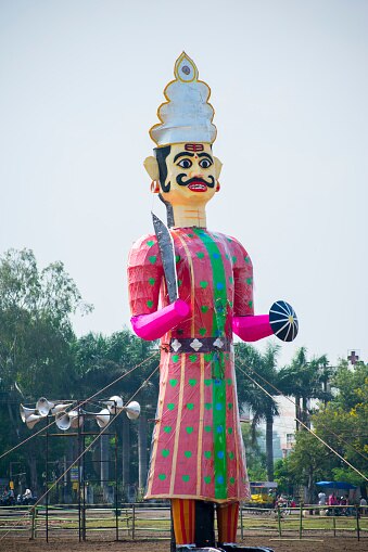 The festival culminates with the burning of effigies of Ravana, Meghnad, and Kumbhakaran.