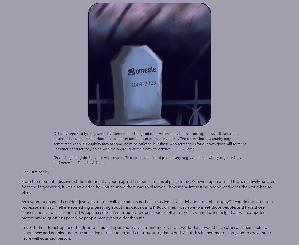 Farewell, Omegle, you sure knew how to keep things interesting.