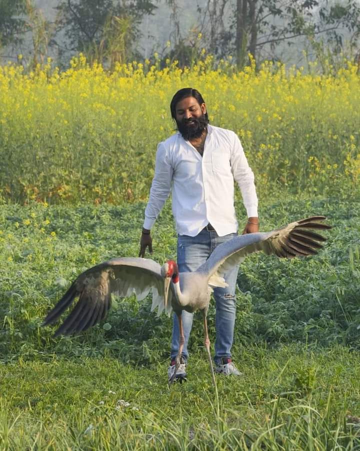 Arif had got the Sarus crane in an injured state a year back. He took it to his house and gave treatment to it. The bird would eat with Arif and follow him when he would ride a bike or go to the fields.