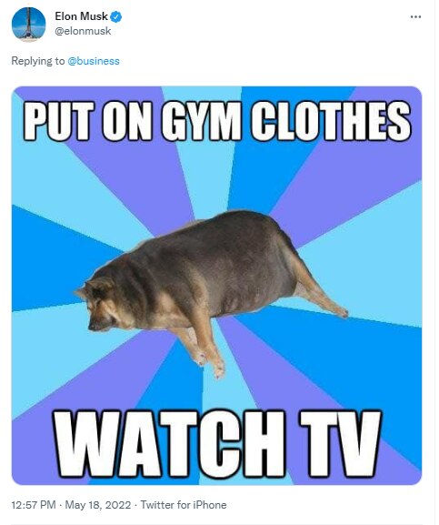 TO NOTE: Elon Musk had mocked the resistance by tweeting a picture of a lazy dog with the caption: “Put on gym clothes. Watch TV.”